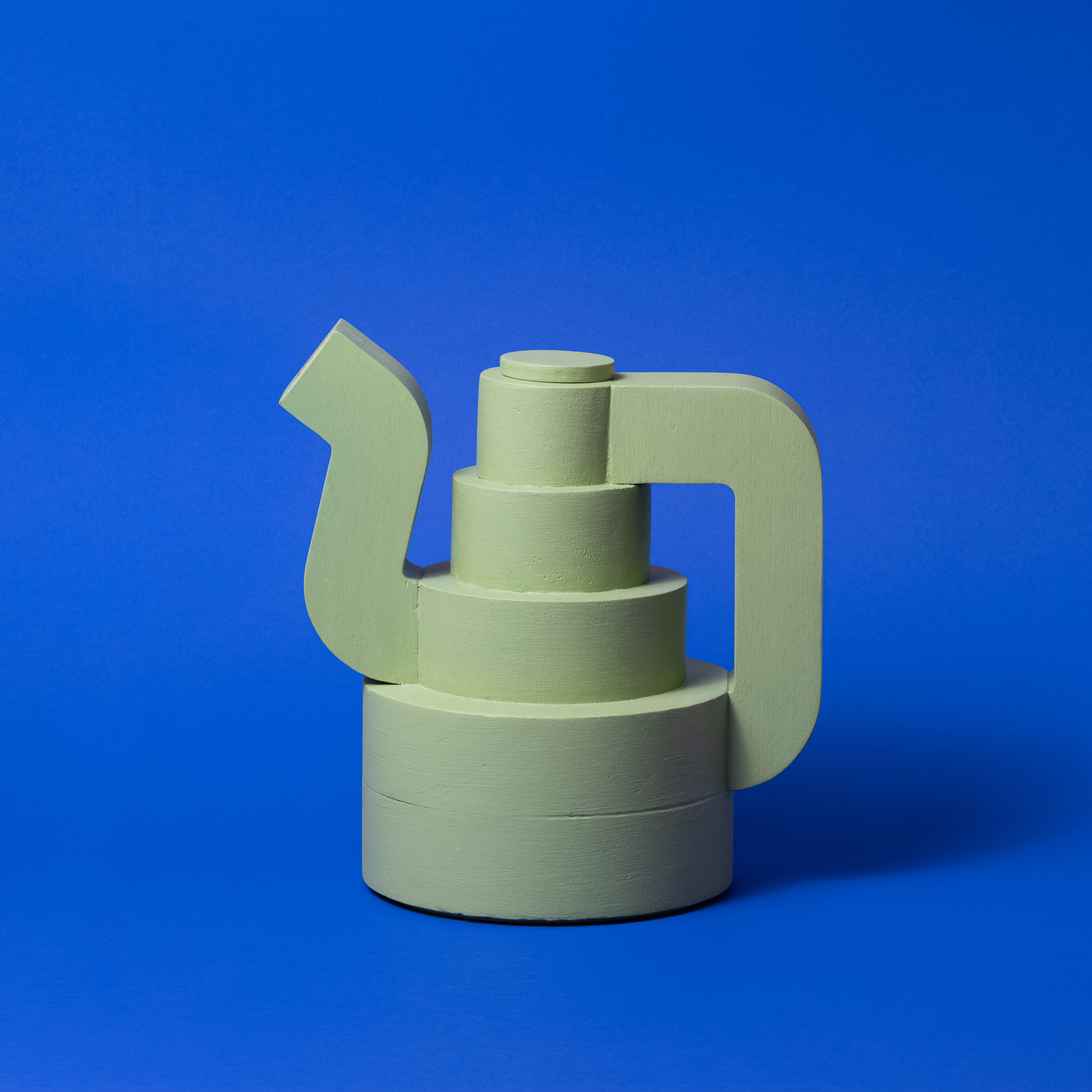 Koffiepot van abachi hout, en dan een maatje groter. Ontwerpster Hanna Kooistra heeft met dit object geprobeerd het karakter van oude zilveren koffiepotten te vertalen naar een hedendaagse vorm. Het ontwerp is opgebouwd uit grote schijven hout, uitgehold en vervolgens geschilderd met een voedselveilige coating.